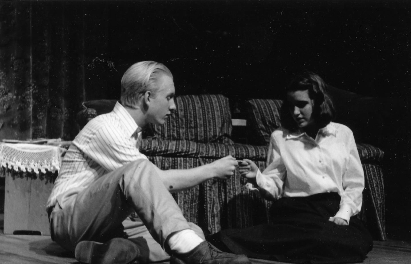 | A Gentleman Caller (Ryan Fransisco) makes Laura (Anna Bowers) feel comfortable. |