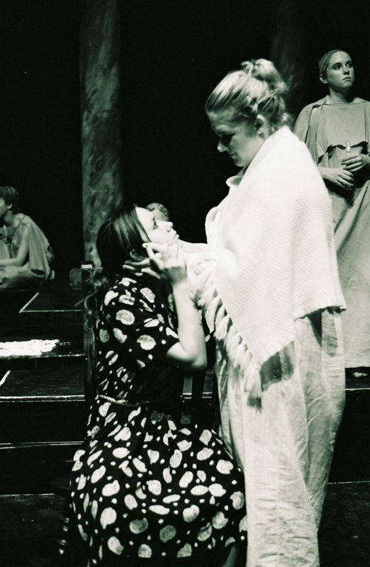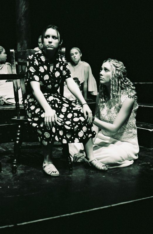 | The Nurse (Kati Hammond) gently scolds Antigone (Christine Faulkner). |