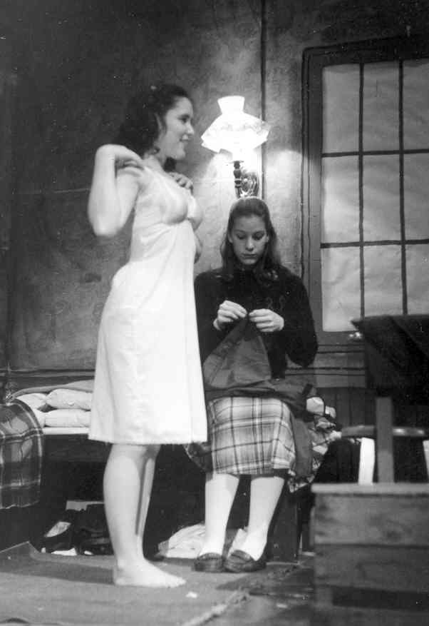 | Margot (Jill Scuderi) helps Anne (Junnie Cross) prepare for a date with Peter. |