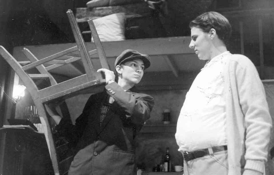 | Peter (Derek Kowalski) threatens his father (Jeff Staab). |