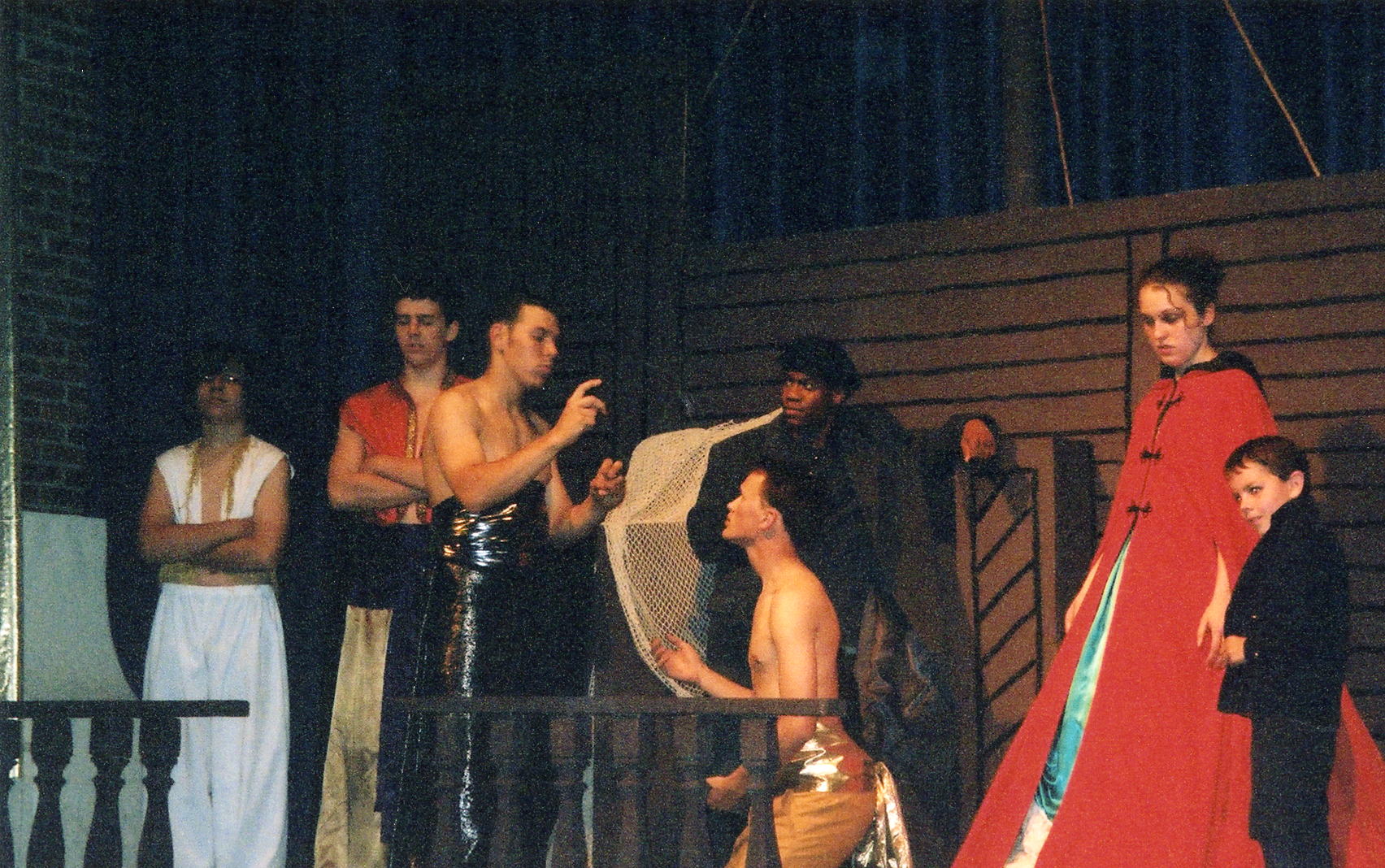 | The Kralahome (Eric Banks) gives instructions to the Interpreter (Tim Webb) while the Capatin (Charles Clark), Anna (Lindsay Zimmerman), and Louis (Andrew Walls) look on. |